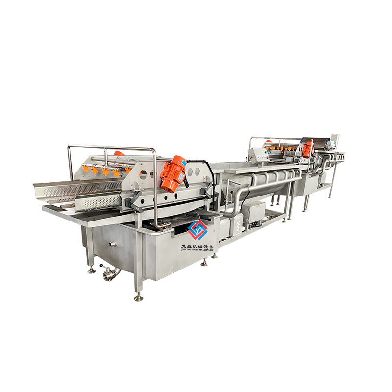 凈菜加工成套生產(chǎn)線是針對多種的蔬菜進行清洗和加工處理的,可以將蔬菜表面的泥土進行清洗干凈,還能夠對蔬菜進行農殘?zhí)幚?,可以將蔬菜的農藥進行分解,提升蔬菜的品質程度,通過清洗之后的蔬菜輸送到震動篩進行麗水處理,能夠將蔬菜上大部分的水分瀝干,之后輸送到風干設備上可以將蔬菜的表面水分更加充分的蒸發(fā),之后再進行整理過后可以進行真空包裝處理,經(jīng)過真空包裝處理之后的蔬菜可以延長保鮮時間,建議填充質量的氮氣可以使保鮮效果好。